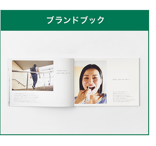 バニスターは、ロゴや商品パッケージだけではなく、提供価値を起点とした、ブランドが関わる接点のすべてをデザインします。さらに、ブランディングデザインを効果的に進めていくために、独自の手法で作られたブランドガイドラインやブランドブックなど、社内の指針となるブランドツールを作成し、中長期的に運用していくことを推進、支援しています。