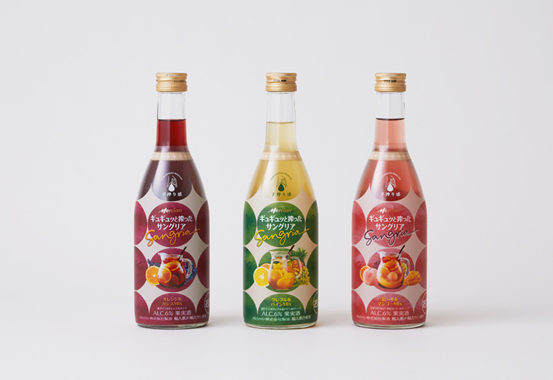 バニスターは、メルシャンのフルーティでリッチな果実感が特長のワインブランド「ギュギュッと搾ったサングリア」のリニューアルパッケージデザイン開発、商品ブランドロゴ・アイコン開発を行いました。