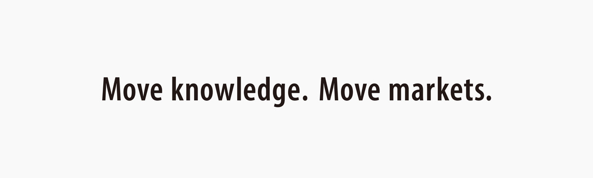 これらを元に、事業ブランドのターゲットは、これから到来するであろう、さらなるグローバル化やクラウド・A I 利用の促進によってすべてのデータが繋がる時代に、ビジネスの成功のためにデータをもっと利活用したいと考える人々に設定されました。その人々に、「自由にデータを繋ぐことで、情報を有用な知へと進化させ、データを通じて共感を作り出すこと」を提供価値として定めました。そして、ブランドメッセージとして「Move knowledge. Move markets.」というブランドタグラインを作成しました。